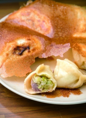 キャベツや玉ねぎなどを使った餡と一緒に、上質の豚肩ロース肉の塊がゴロゴロと入っている、贅沢な一品。もち粉などを使って店内で自家製造した皮は、弾力たっぷりで食べ応えがある。