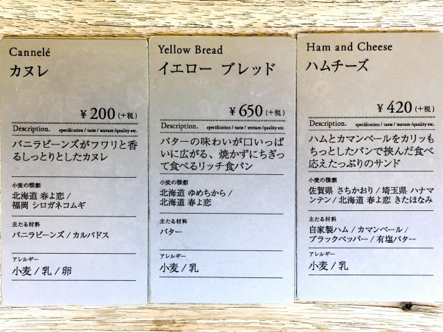 しかもこの店では、6品種の国産小麦を使っている。北海道産の「ゆめちから」、「春よ恋」、「きたほなみ」、埼玉県産の「ハナマンテン」、福岡県産の「シロガネコムギ」、佐賀県産の「さちかおり」である。輸入小麦は、ドイツ産のブロッケンのみ使用。