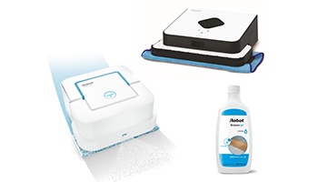 「ブラーバ」シリーズは、フローリングやタイルなどの床を水拭き(ウェットモード)とから拭き(ドライモード)で自動清掃する床拭きロボット。新モデルでは、ユーザーから要望の高かった床用洗剤にシリーズで初めて対応。本体のタンクに水と一緒に入れることで、さらにすっきりと清掃するだけでなく爽やかな香りを室内に広げる効果も期待できる。新モデルとセットで使える専用床用洗剤を今夏発売予定で、税別価格は880円。