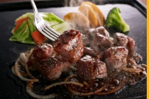 ブロンコビリーこだわりの炭焼きにより、超厚切り肉を外はカリッと、中には肉汁をたっぷりと閉じ込めジューシーに仕上げています。