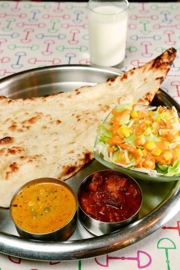 ランチセット(カレー2種、ナンorライス、チャイorラッシー) 850円