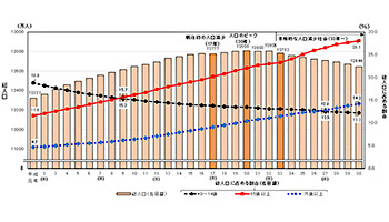 「人口」「労働」「経済」「その他」の4項目で構成。「人口」では、平成23年からの総人口の減少や、平成27年に75歳以上人口の割合が0~14歳人口を上回ったことがわかる。男女ともに未婚率が上昇していること、東京圏への転入超過などもデータからうかがえる。