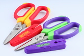 刃体に細かいギザ刃を入れるセレーション加工によって、切るものを逃しにくく、じゅうたんやアラミド繊維などもしっかりと挟み込んで切る事ができる、高性能なハサミとなっています。