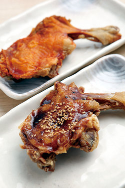 ジューシーな胸肉を調味液に丸2日漬け込んで揚げた逸品。