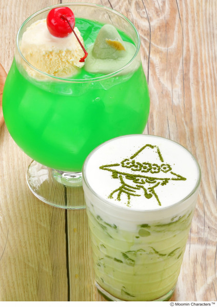スナフキンがテーマのドリンクメニュー。爽やかなソーダです。