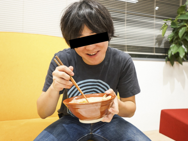 止まってしまったので、丼を奪ってほかの同僚にも食べてもらいます。