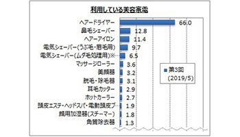 マイボイスコムは、「美容家電」に関するインターネット調査を5月1~5日に実施、1万288件の回答を集めた。この調査は、今回で3回目となる。