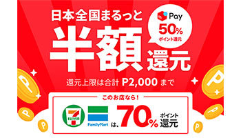 メルペイは6月14日、加盟店で「メルペイあと払い」を利用して決済すると支払額の50%相当のポイントを還元する「日本全国まるっと半額ポイント還元キャンペーン」を開始した。セブン-イレブンとファミリーマートは還元率が上がり、70%相当のポイントが戻ってくる。