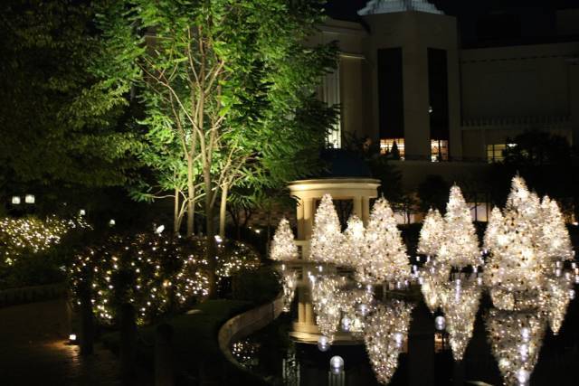 すると、今年はじめてイルミネーションが設置された「リリーポンドガーデン」に出ることができます。