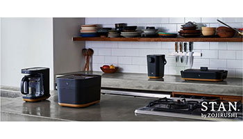 シックなトーンのシステムキッチンにマッチする象印マホービンのブランド「STAN.(スタン)」シリーズ。実際に使用する場合は電源コンセントが必要だ