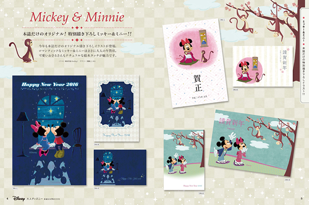 「大人ディズニー素敵な年賀状2016」ではミッキーとミニーの大人っぽい描き下ろしデザイン。