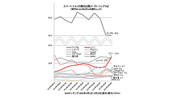 また、この間、着実にシェアを伸ばしていたのがサムスン。旧モデルのGalaxy S9のシェアが上昇、6月に新モデルのGalaxy S10シリーズを発売してシェアを引き継いだ形だ。