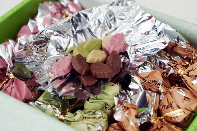 小さくで可愛い木の葉の形。それぞれの包みの色で味が異なる。