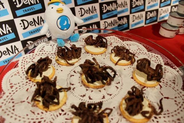 クモ! というか、タランチュラ!! ものすごい存在感です。ネットで調べたところ、この缶詰なかなかのお値段がします。それをこんなにたくさん用意するなんて、DeNAトラベルさんスゴイ! でもちょっと方向間違ってませんか!?