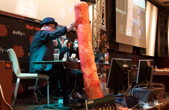 10問全問正解者には、ローソンの「黄金チキン寝袋」がプレゼントされました。黄金チキンに包まれて眠れるというすごい寝袋。自分がフライになった夢を見そう。