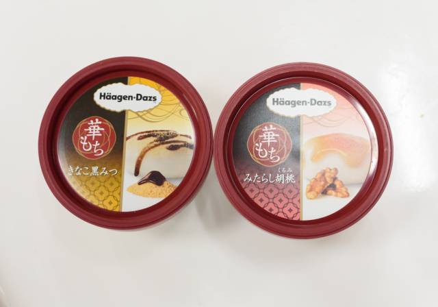 ハーゲンダッツ「華もち」シリーズ きなこ黒みつ(左)&みたらし胡桃