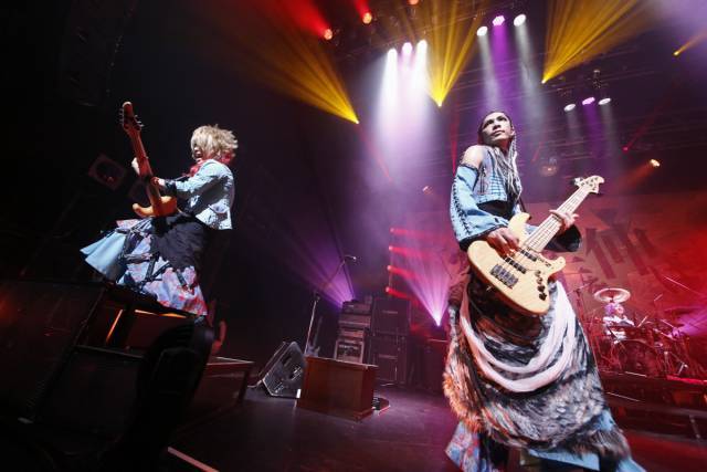 ある種の決意表明のような歌詞歌い上げる暁。彼のトレードマークである2つ角の髪型はライブ序盤でもう原型をとどめていない。そんなことを意に介さず歌い続ける。