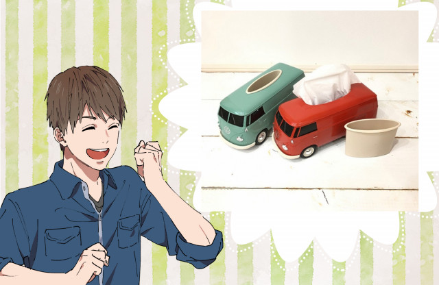 フォルクスワーゲンバスモデルの走るティッシュケースで!