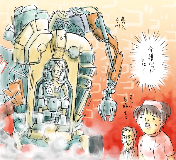 主人公の女の子はこのベッドを「人間の温かみがない」と否定しますが、個人的にはこのくらいドライ且つ手厚い介護、いいと思いますけどね。はやく開発されないかな~Z-001。