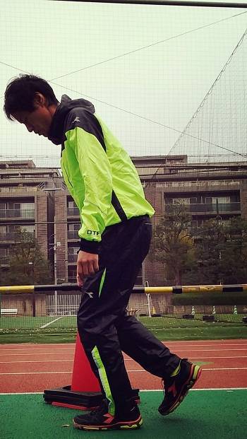 原因の一つに体幹の弱さがあげられます。レース中盤~後半にかけて、お腹の力が抜けて軽く腰が曲がります。腰が曲がると同時に膝が曲がる。フルマラソンっていう長時間、体を真っ直ぐに保つということも結構大変。