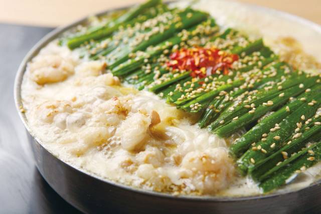 素材とスープにこだわる博多の人気店がルクア イーレに登場。味噌、醤油、水炊きの三種から選べるこだわりのスープと、鹿児島産黒毛和牛の中でも2才までの若い牛の上質なもつを使用した鍋は絶品!ニンニクの量も選べるので平日でも安心して利用できる。