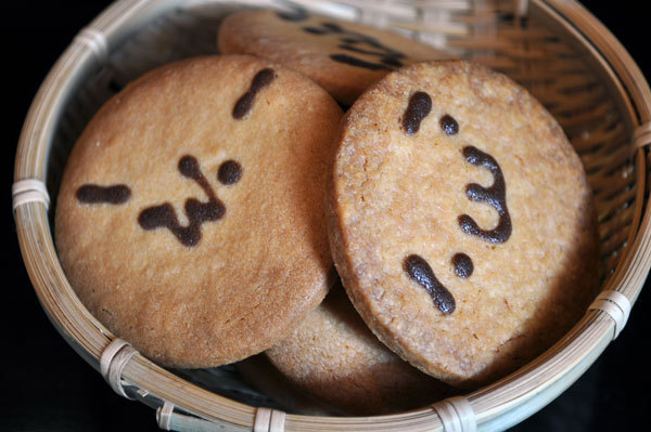 アスキーアートの顔文字「(´・ω・`)」が書かれたクッキー。