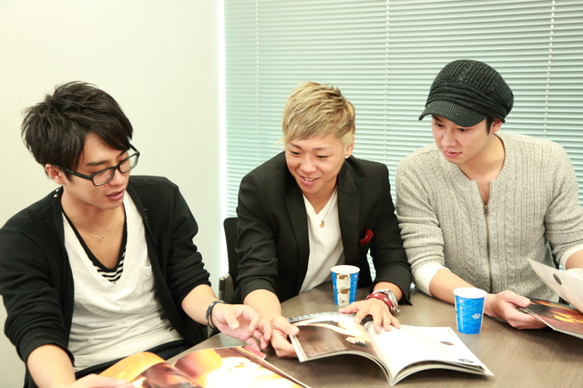 インタビューがはじまるやいなや、いつもの調子でワイワイ盛り上がってくれた3人。撮影中もきっとキャッキャはしゃいでいたんだろうな〜と想像するだけで萌えます! 写真集『メンズ温泉』は、メンバーそれぞれの魅力的な肉体はもちろん、素の表情や、温泉にまつわるアンケートなど見所満載。一人で楽しむのはもちろん、女子会で皆で見るのも楽しいかも!