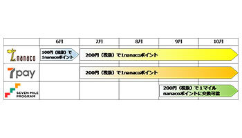 7payで支払うと、nanacoポイントが税別200円ごとに1ポイント貯まり、加えて、セブン-イレブンアプリの「バッジ」や「セブンマイル」が自動的に貯まる仕組み。9月1日以降、セブンマイルは税別200円ごとに1マイル付与され、貯まったセブンマイルは50マイル単位でnanacoポイントに交換できる。ポイント還元率は、少なくとも二つを合わせて算出する必要があり、ファンづくりの側面が強いと感じた。