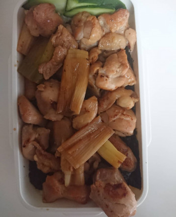 さとっち「ご飯にタレをかけて海苔を敷いて、焼き鳥をどーんとのっけただけ。あまりにも彩りがよくないので、急遽、横にキュウリを置きました。