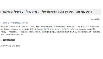 IIJは7月2日の10時にファーウェイ新端末の販売を開始した