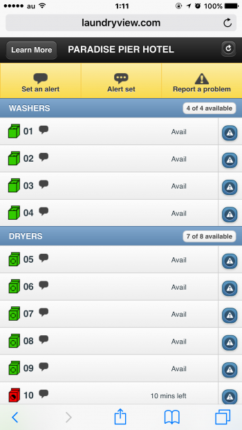そして一番驚いたのが、手元のスマートフォンで、現在のランドリーの空き状況や、「あと何分で洗濯が終了する」という事が表示されるというところ。
