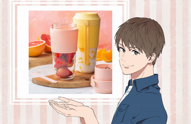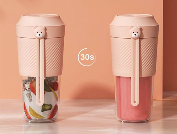 「EASY BLENDER」は、蓋のボタンを押して、カップを逆さまにして、蓋を開けるというたった3つのステップの簡単操作でジュースを作れる持ち運び可能なハンディージューサーです。