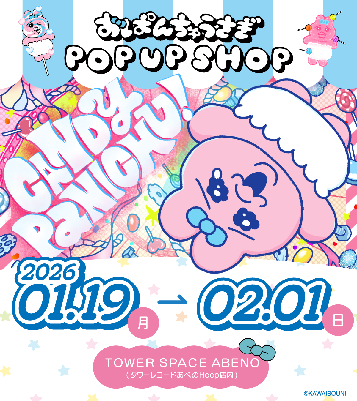 『おぱんちゅうさぎ』より、【CANDY PANICHU!】がテーマのキャンディ工場をイメージした体験展示型POPUP SHOPが「タワーレコードあべのHoop店」にて大阪巡回決定!