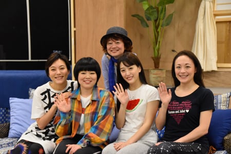 舞台『フローズン・ビーチ』公開稽古より (上段より)鈴木裕美 (下段左より)鈴木杏、ブルゾンちえみ、花乃まりあ、シルビア・グラブ
