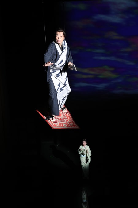 第一部で上演されたのは、中村が主演を務める時代劇『勝小吉伝 ~ああわが人生最良の今日~』。中村とは4度目のタッグとなる鴻上尚史が脚本・演出、鹿目由紀が脚本を手掛け、中村が勝海舟の父である勝小吉を演じる。共演は、小吉の妻・賀来千香子、息子の麟太郎(未来の勝海舟)・東啓介、麟太郎の恋人・愛加あゆ、悪役の片目・山崎銀之丞、小吉の兄・田山涼成、小吉の甥・寺脇康文ら個性豊かな面々。時代劇ならではの殺陣はもちろん、生演奏あり、歌あり、ダンスあり…そしてまさかのフライングあり!?という賑やかで楽しい作品に仕上がっていた。そしてその楽しさの中には「相手を信じる気持ち」や「今日の自分によかったと言える生き方」などさまざまなメッセージが詰まっていて、そこから生まれるあたたかなものには“中村雅俊”という存在に通ずるものを感じた。中村が演じる小吉は、自由でどこかとぼけているけれど剣の腕が立つ男。そんな彼を中心に登場人物それぞれが周囲の人を愛し、信じ、影響を与え合い、勇気を持って一歩踏み出す姿にぜひ注目してほしい。