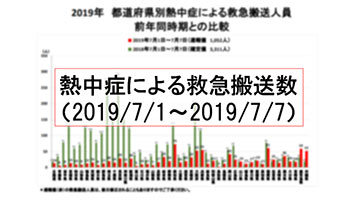 総務省消防庁が発表している熱中症情報によると、7月1~7日の1週間に全国で熱中症で救急搬送された人数は速報値で1052人。前週の1044人から微増したものの、前年比では3分の1以下だった。