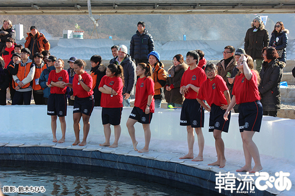 ひえ~。見ているだけでブルブルします。外国人の多くはすぐに上がって、あまりの寒さにギブアップ気味でした。でも、これまた貴重な体験ですよね。と言っても、私はビビりなので参加できませーん!