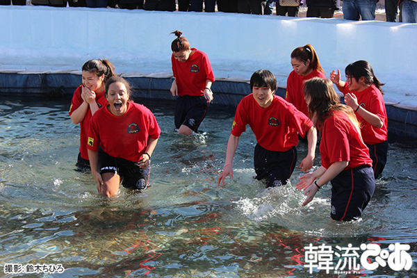 上の写真は、参加を志した勇気ある外国人の皆さん。けれど、なんとなく皆、「さみーよー」と心の中で叫んでいるように見えるのは、私だけでしょうか……。