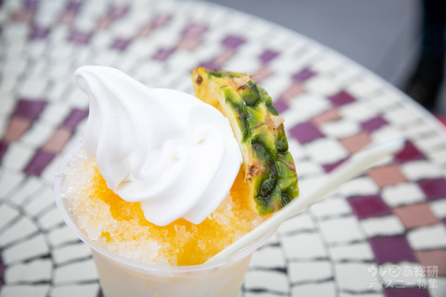 昨年、ドナルドの誕生日に登場した「シェイブアイス(トロピカルフルーツ)」と似ていますが、今年は「クリーム・シェイブアイス」になり、大きなパイナップルがトッピングされ、見た目も味もパワーアップしました!