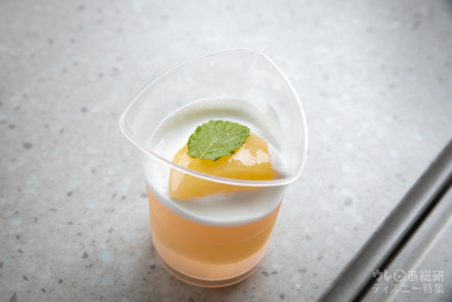 デザートのピーチゼリーは、上だけでなくゼリーの中にも大きな黄桃が入っていて食べ応えバッチリ!