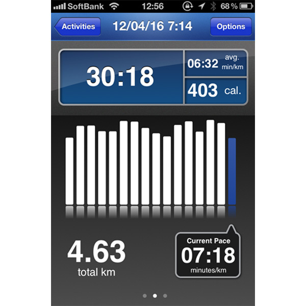 走行中の画面をスワイプするだけで何通りか表示を切り替えられるので、細かい捜査ができない走行中には便利な機能。メカっぽい操作画面は男性ウケがいいかも。さらに、1分単位、1時間単位のラップタイムがリアルタイムで表示されるので、走行中に“ペースが乱れてきたな”ということが分かるので、同じペースで走り続けるには便利なポイント。無料というのも、まずはランニングアプリを試してみたいという人にはおすすめ。ただ、表示やアナウンスが英語のみなのが使いにくい部分かもしれない。