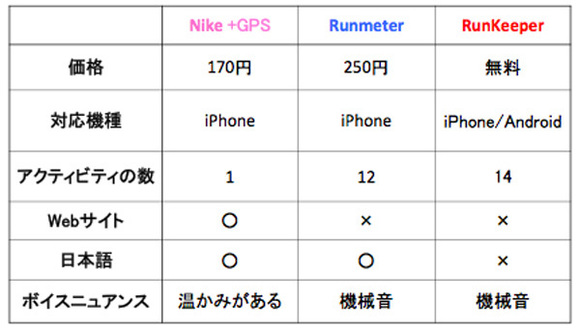 それぞれのアプリの機能をわかりやすく表にまとめてみました。