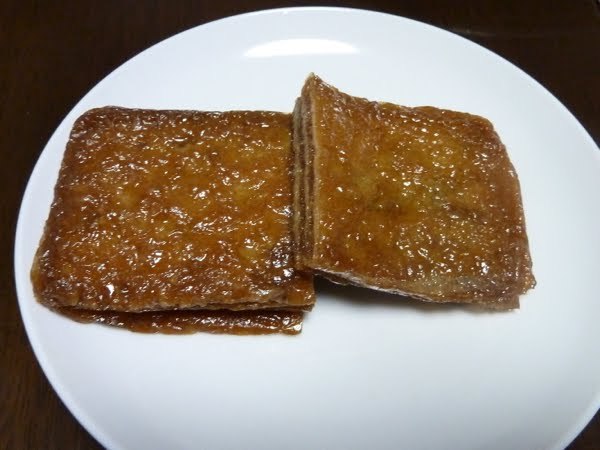 いなりあげは袋のまま、お湯に数分漬けて温める。