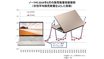 この動きに呼応するように、14日ごろからノートPC市場が前年より活性化。需要が伸びる休日には、平均販売数量の2倍を超えるほど売れ行きが伸びた。今後しばらくは、Windows 7のサポート終了がノートPC買い替えのキーワードとして重要になりそうだ。(BCN・南雲 亮平)