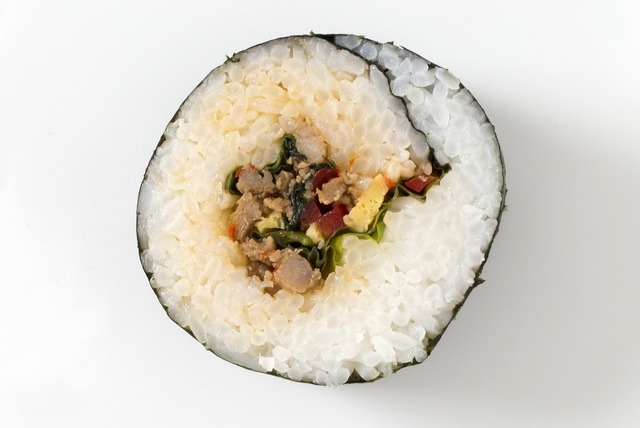 さらにさらに、海老チリ&海老マヨを巻いた「過門香」の『中華の恵方巻』(950円)、タイの人気料理ガパオとラープを使用した「マンゴツリーキッチン」の『微笑みの国の恵方巻』『幸せを呼ぶ恵方巻』(各750円/ハーフ390円)といったアジアンのものなど、個性的な恵方巻も登場。エスニックと海苔も合いそうですね~。