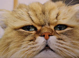 しょんぼり顔のもふもふ猫・ふーちゃん。飼い主の “婿”こと、牧野直樹さん