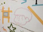 マスキングテープ展の入り口。キティちゃんのテープ柄を見て大喜びの子ども。