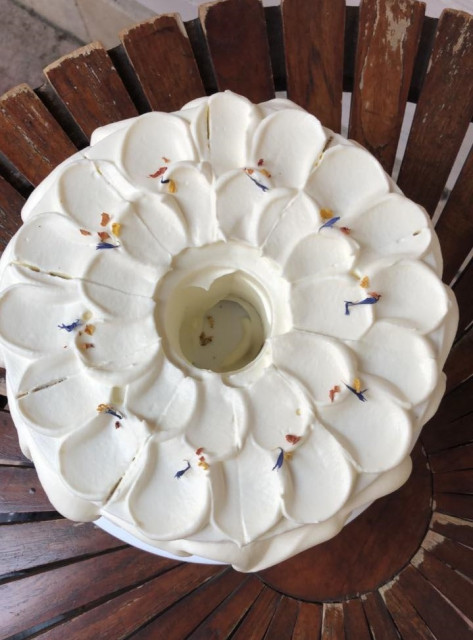 「当店の紅茶シフォンは『セーデルブレンド』という北欧紅茶を使用しています。茶葉と一緒にオレンジピール、バラ、マリーゴールド、ヤグルマギクがブレンドされており、華やかでフルーティーな香りがします。