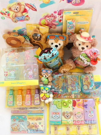夏休みに販売中のダッフィーのグッズは、「ダッフィーのサニーファン」、「ダッフィーたちのかくれんぼ」のシリーズと「レギュラーグッズ」です。