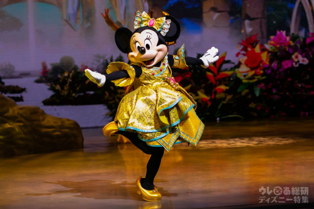 衣装には蝶のモチーフがあり、ミニー自身もスカートを使って羽ばたくような仕草をします。